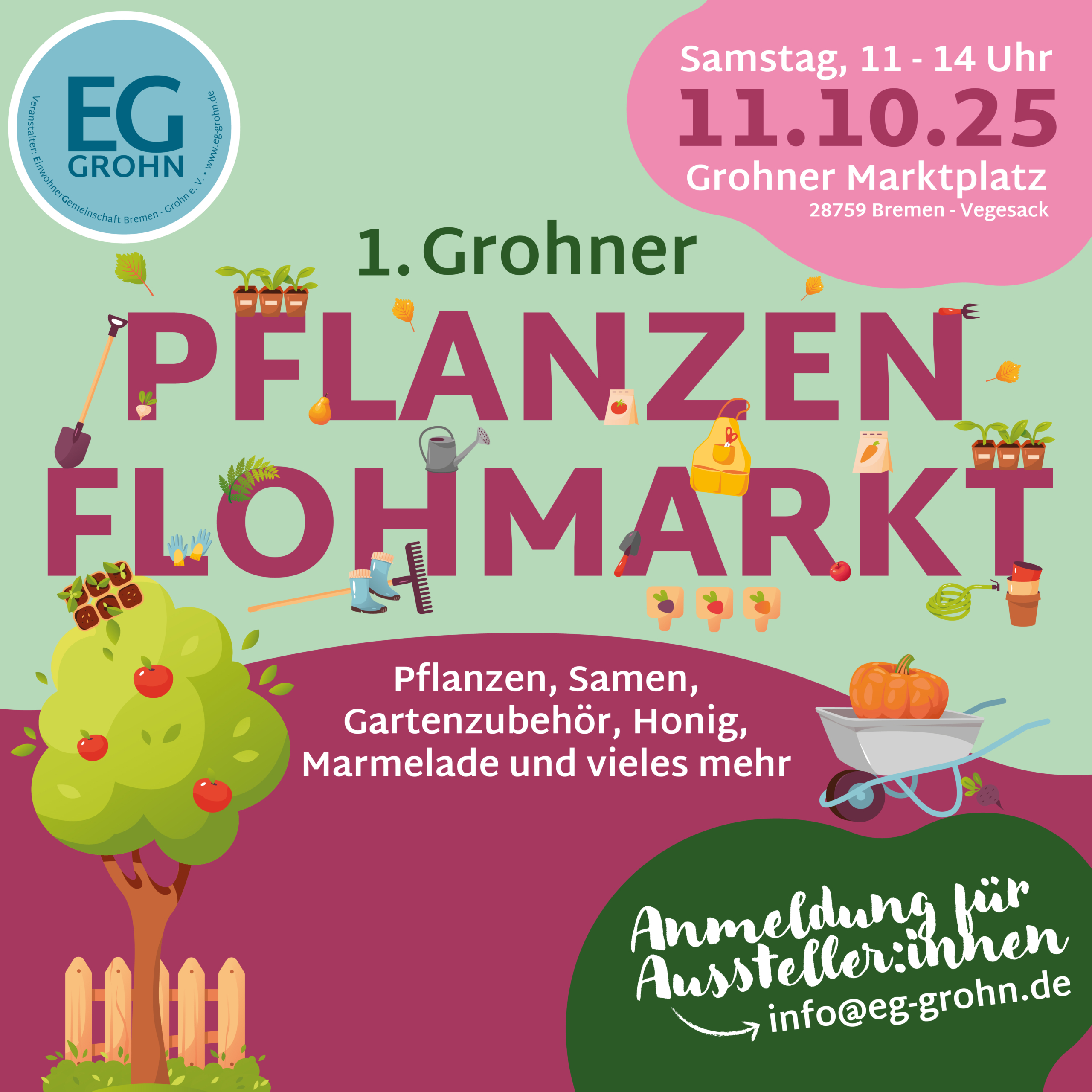 An diesem Samstag veranstaltet die Einwohnergemeinschaft Grohn e.V. erstmals einen Pflanzenflohmarkt. Von 11 bis 14 Uhr verwandelt sich der Grohner Marktplatz in der Nähe der Pumpe in ein grünes Paradies. Hier haben Sie die perfekte Gelegenheit, Ihre überschüssigen Pflanzen, Setzlinge und Ableger gegen neue Schätze für Ihren Garten oder Balkon zu tauschen oder zu verkaufen. Ganz gleich, ob Sie auf der Suche nach einer seltenen Blume sind oder einfach nur einer anderen Pflanze ein neues Zuhause geben möchten – bei uns werden Sie fündig. Machen Sie mit